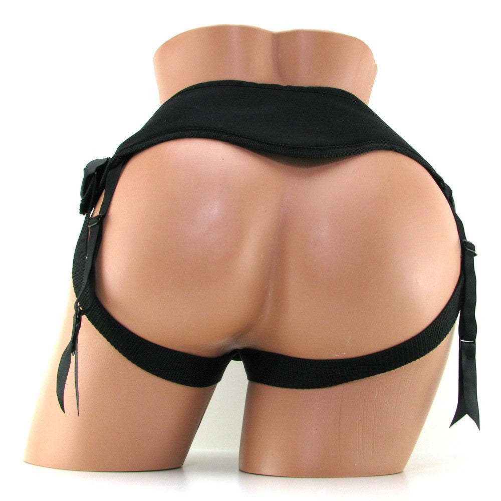 Designed for ultimate comfort and amazing stability, the Supreme Harness comes fully assembled, you'll need only to step in and pull the straps at waist and thigh to secure the ultra soft yoke and wide, softly padded back-piece against the body. Engineered for breathtaking versatility, the Supreme comes along with a trio of rubber O-rings, one of which will snugly surround the base of your choice of Vac-U-Lock accessory, holding everything tightly in place for breathtaking freedom of movement. Adding even more security, the Vac-U-Lock plug itself slides in behind a layer of the yoke's inner side, protruding through a slip-resistant opening that culminates in four snaps straps to hug the O-ring (and penetrator) used. As a final touch, two optional garter straps hang from either side of the back-piece, essentially turning the Supreme into a piece of lingerie when combined with a pair of sexy thigh-highs. Fits up to a 60 inch (152.4cm) waist.